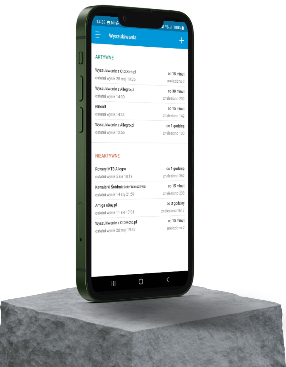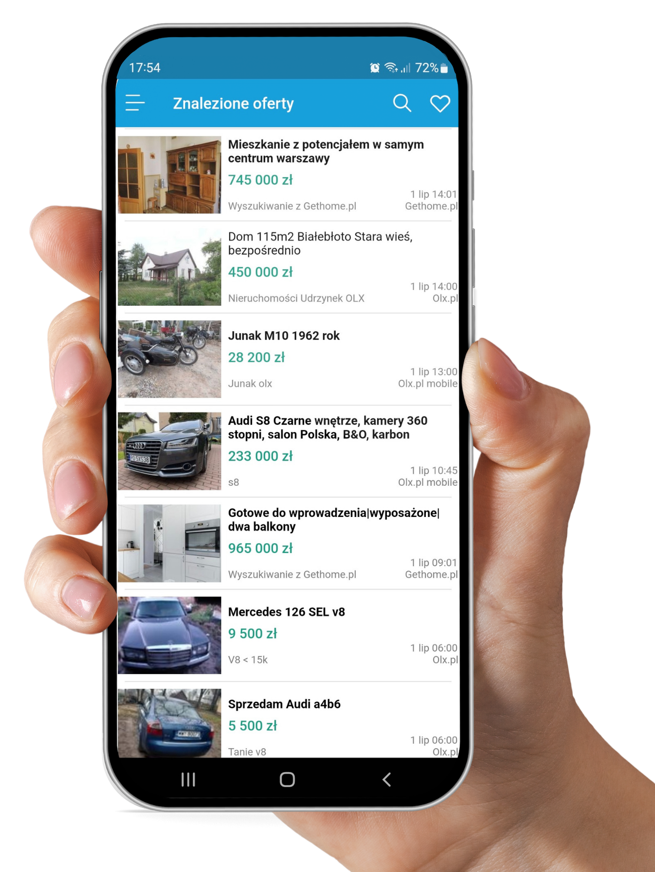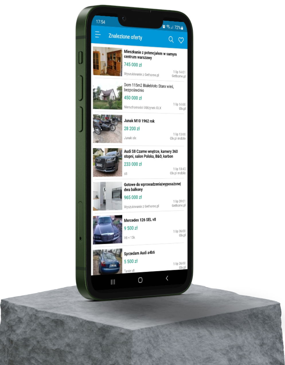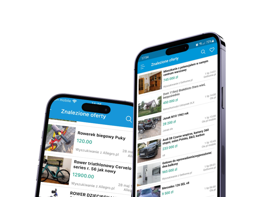 Monitorujemy (sprawdzamy 24h / 7dni) portale ogłoszeniowe oraz wysyłamy natychmiastowe powiadomienia po pojawieniu się nowych ogłoszeń spełniających twoje kryteria.