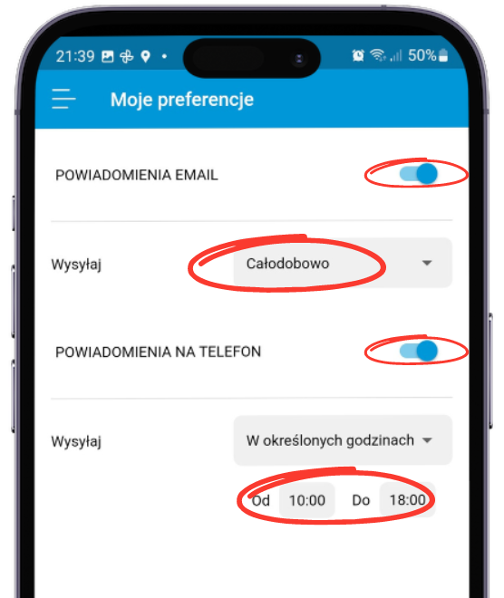 Zdecyduj i ustaw Swoje Preferencje – kiedy chcesz otrzymywać powiadomienia – w jakim przedziale godzinowym. Całodobowo czy w określonych godzinach?