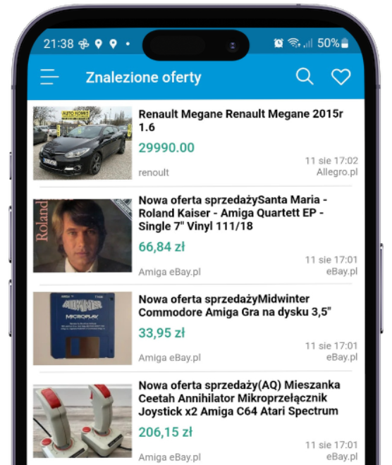 W zakładce – znalezione oferty, zobaczysz wszystkie znalezione oferty, które spełniają ustalone przez Ciebie wymagania. Klikając powiadomienie z aplikacji – o nowych ofertach – będziesz cały czas na bieżąco!