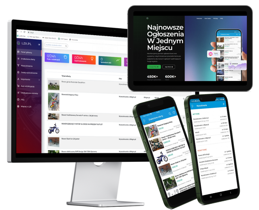 LZX obsługuje ponad 100 najpopularniejszych serwisów ogłoszeniowych w Polsce i za granicą. Znajdziesz wśród nich m.in. OLX, OtoMoto, Allegro, OtoDom, Gratka, Sprzedajemy.pl, a także zagraniczne giganty jak Mobile.de czy eBay. Jeśli brakuje Twojego serwisu – napisz do nas, stale dodajemy nowe integracje.