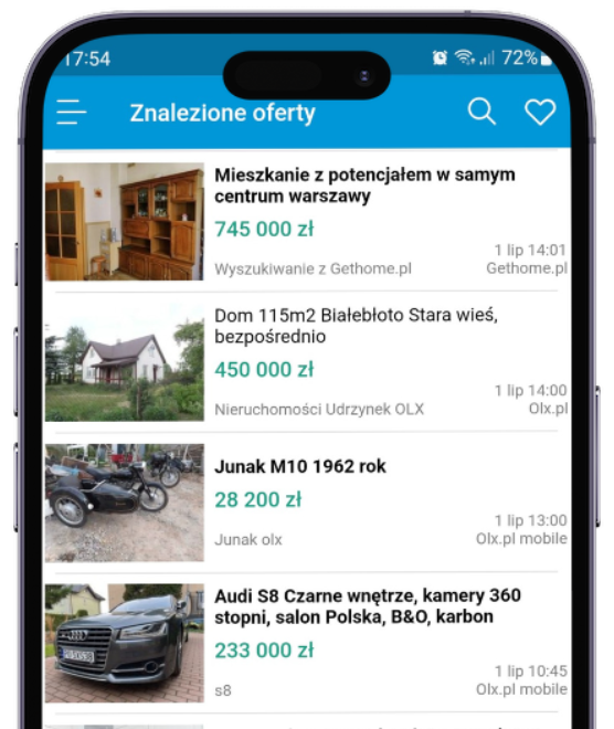 Monitorujemy (sprawdzamy 14h / 7dni) portale ogłoszeniowe oraz wysyłamy natychmiastowe powiadomienia po pojawieniu się nowych ogłoszeń spełniających twoje kryteria.